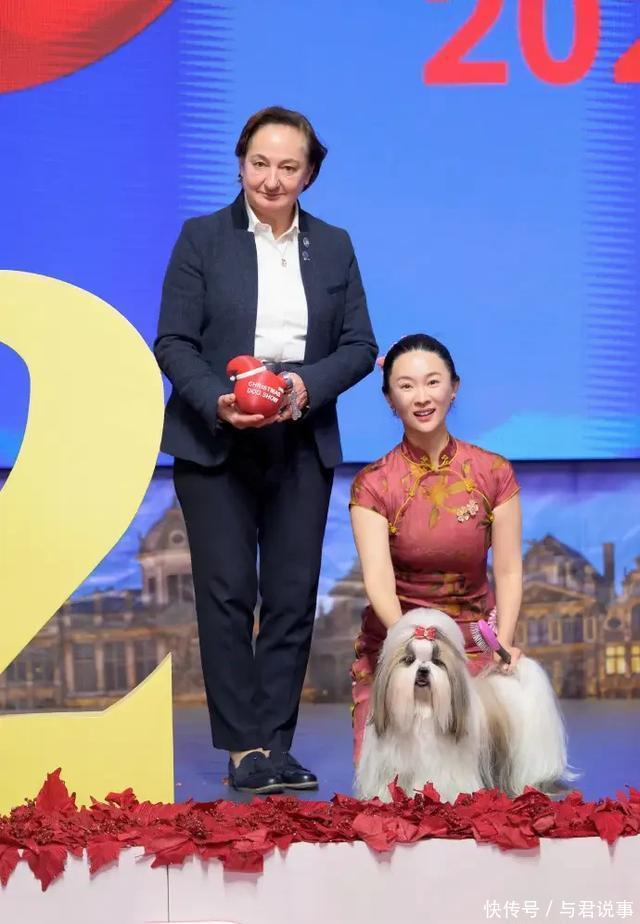 更牛的是,霍思燕团队是这次唯一的中国团队,她自己还是第一次当牵犬师,带着中国原生犬种西施犬上场,居然一路过关斩将,不仅拿了品类冠军,还拿下了全场总冠军JBIS2,创造了中国原生犬种在这个赛事上的历史突破!